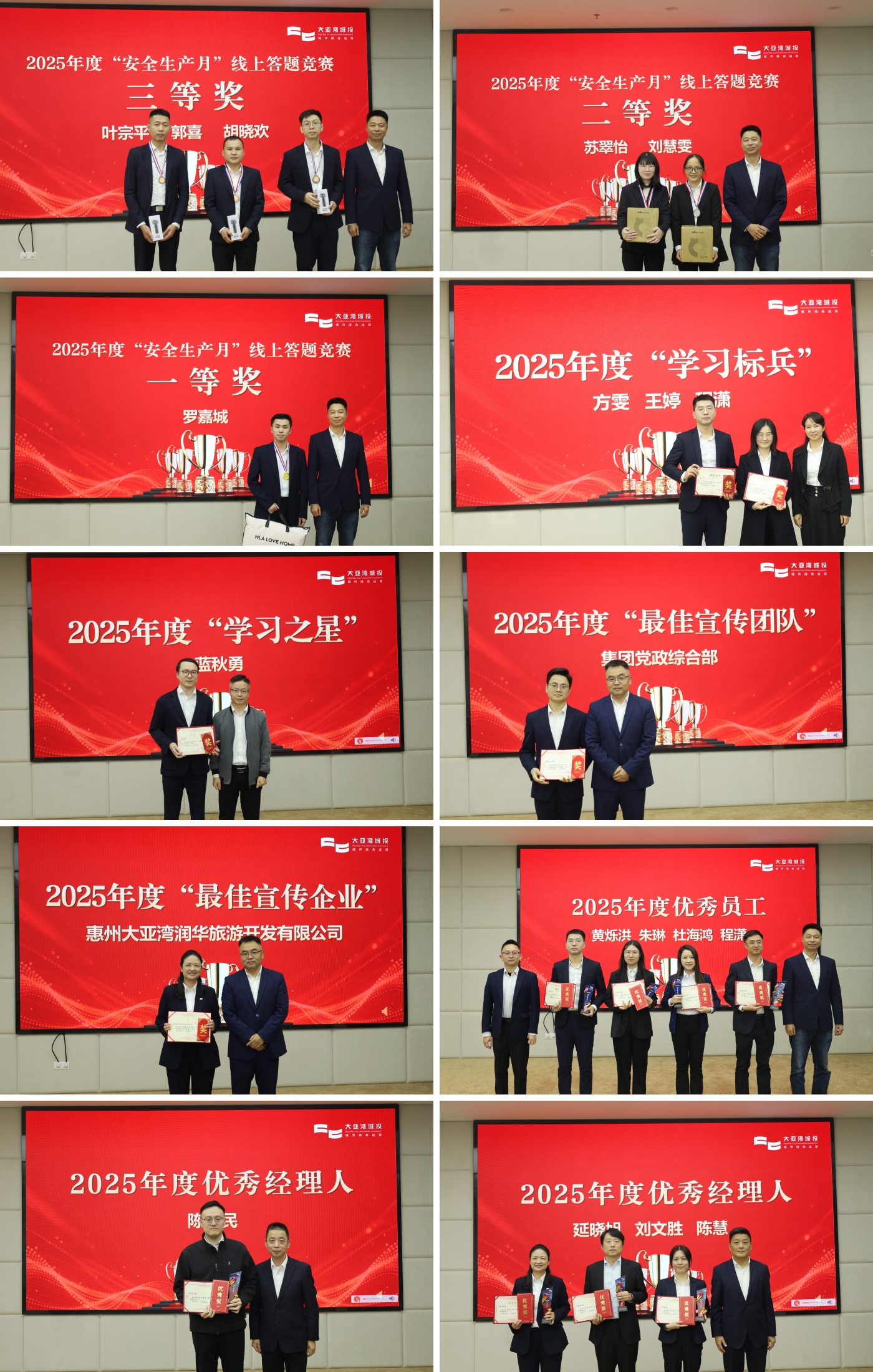 大会伊始,表彰先进,各奖项依次颁发,现场掌声不断,氛围热烈。先后为2025年 “安全生产月” 安全生产知识线上答题竞赛、年度培训学习之星、学习标兵;年度最佳宣传团队、企业;年度优秀经理人、优秀员工获奖个人及集体颁奖,集团领导分别为各奖项获奖者颁奖。