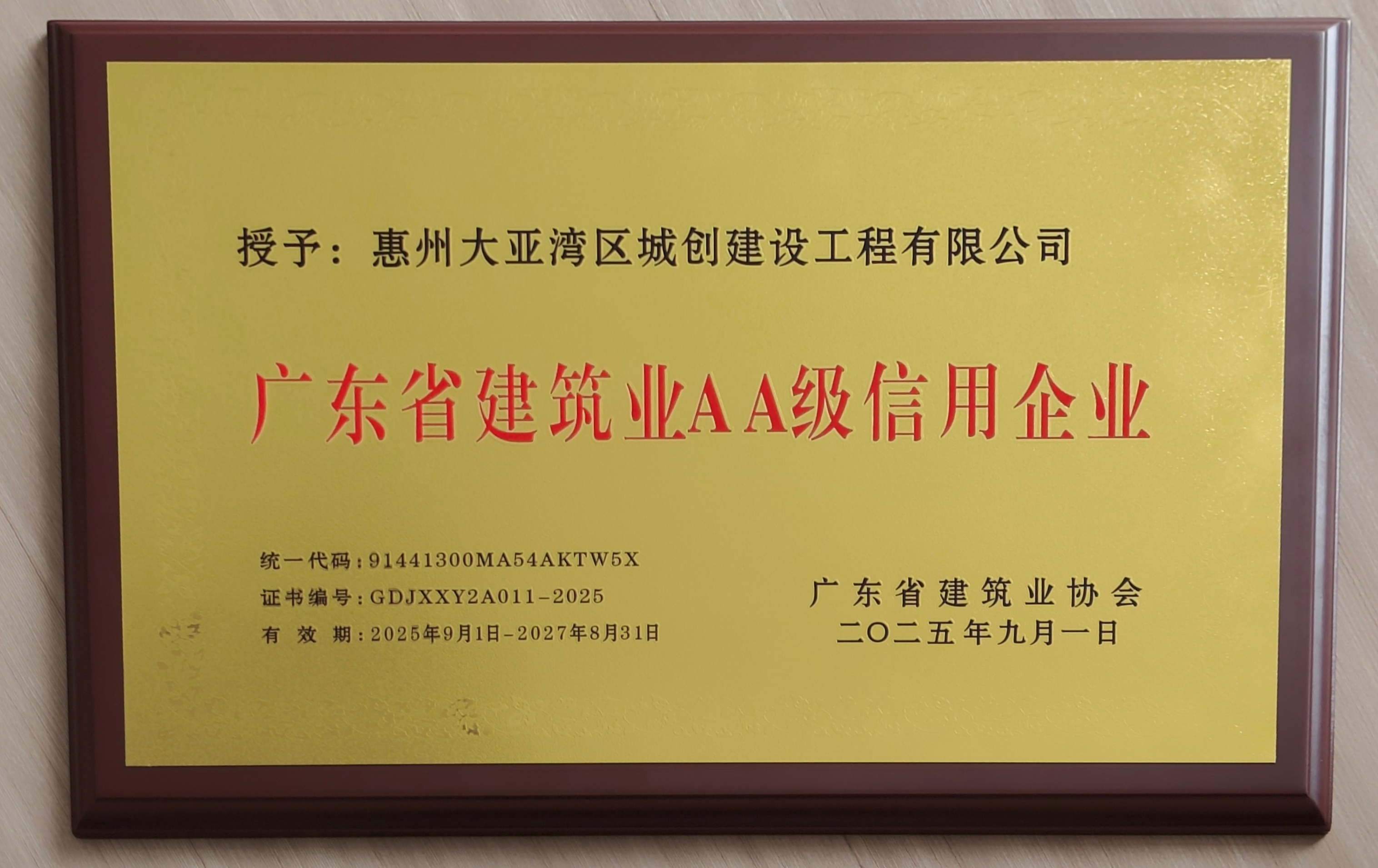展望未来,城创公司将以此次获评为新起点,以信用为基石,赋能高质量发展,进一步强化诚信意识与行业自律,严格履行合同,持续提升安全管理与工程质量水平。公司致力于维护公平开放的市场秩序,勇担社会责任,为大亚湾区城市建设和广东省建筑业的高质量发展贡献更大力量。